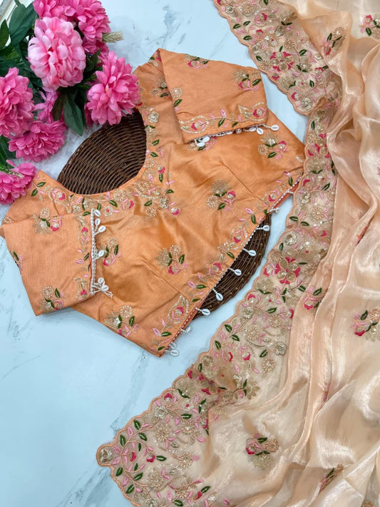 Drape yourself in luxury with our Soft Lichi Silk Saree. This exquisite piece features a...