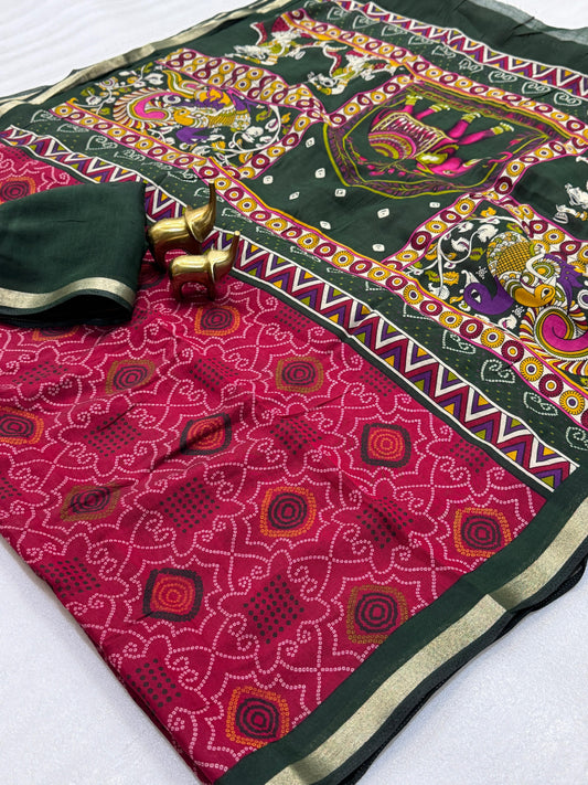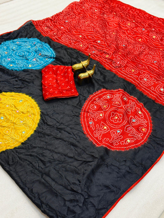 πΈ Product Details Fabric: Premium Dola Silk Print: Bandhani print Border: Zari woven border Blouse:...