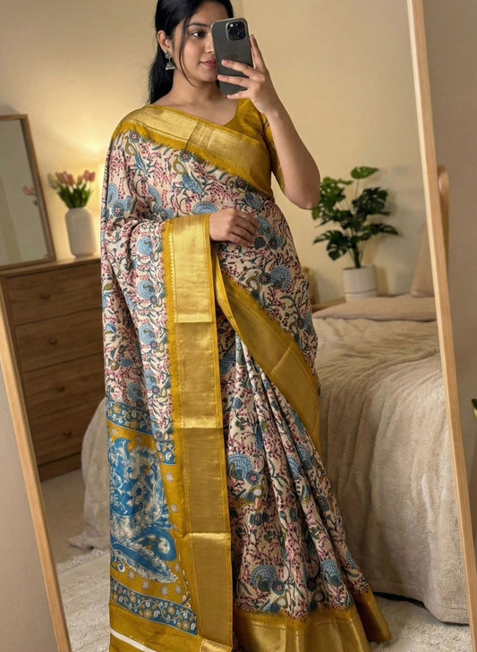πΈ Product Details Fabric: Kerala Gold Tissue Print: Digital Floral & Kalamkari Prints Pallu: Designer...