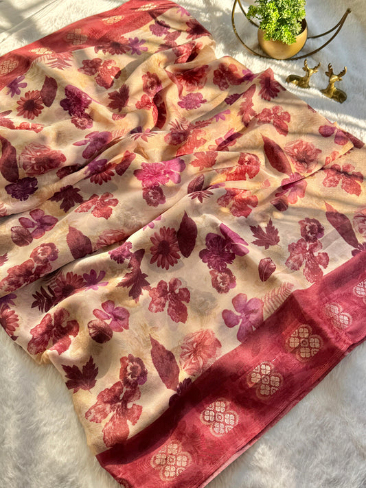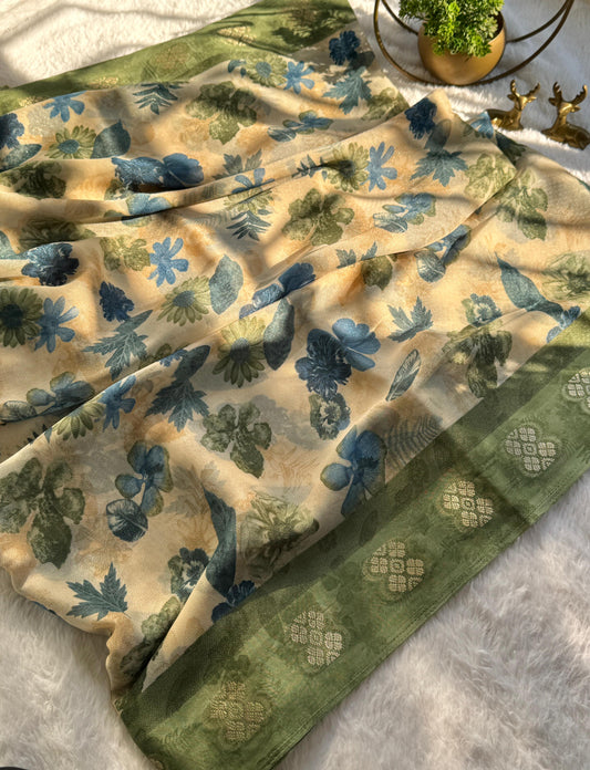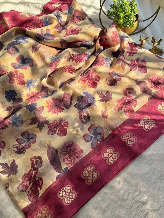 πΈ Product Details Fabric: Soft Self Silk Print: Floral Print Border: Satin border with zari...