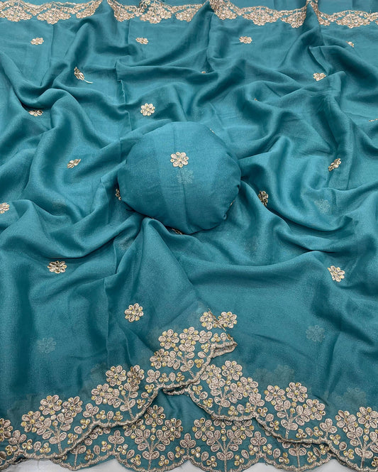 🔸 Product Details Fabric: Star Georgette Work: Heavy sequin embroidery work Blouse: Matching embroidered blouse...