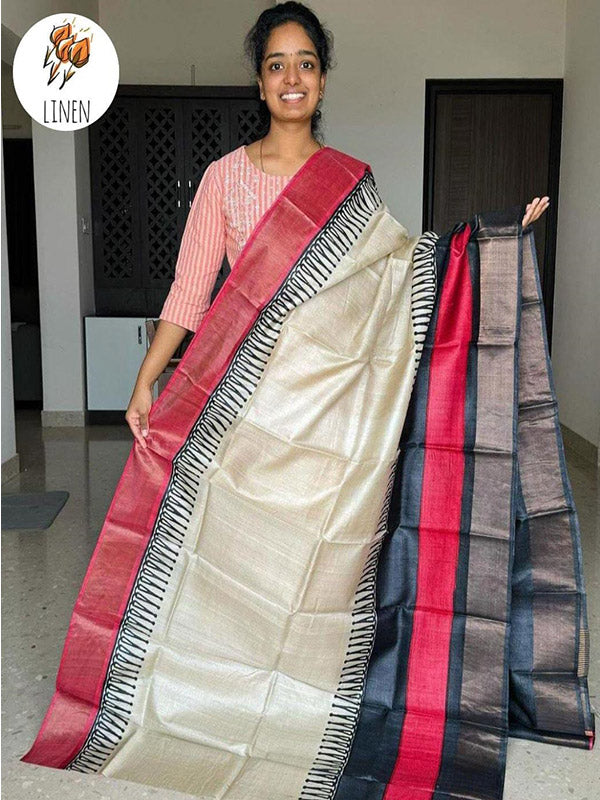 Affordable Linen Printed Saree with Gold Zari Border SA125-262