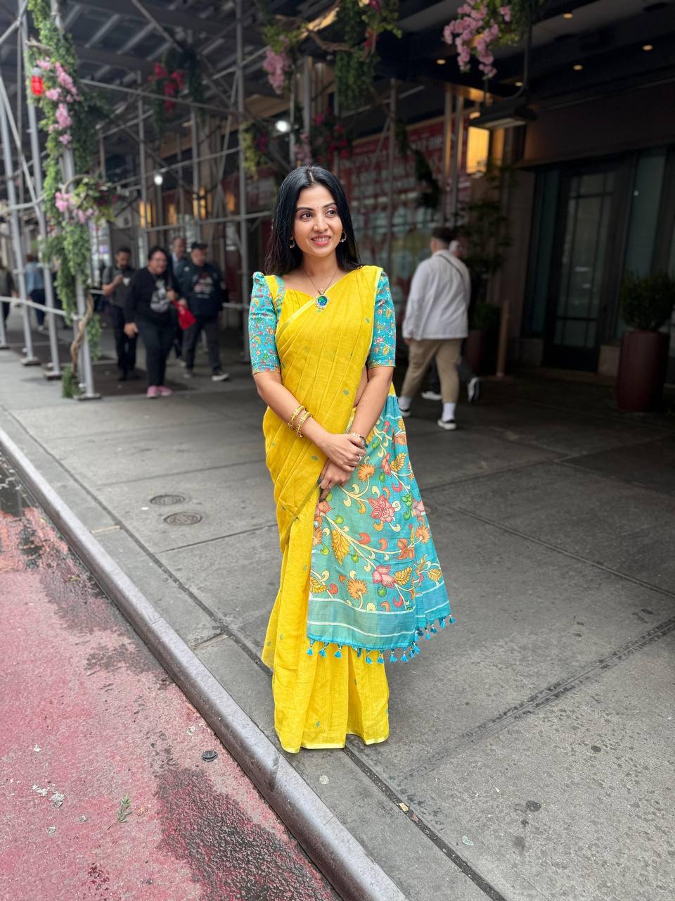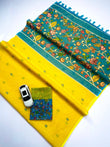 Elevate your festive wardrobe with this Linen Saree featuring silver zari patta and exquisite digital print designs. Perfect for celebrations, this saree combines elegance, comfort, and a modern touch.