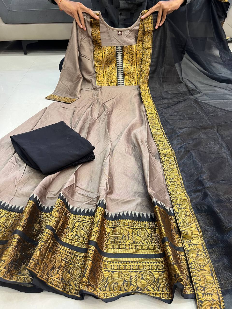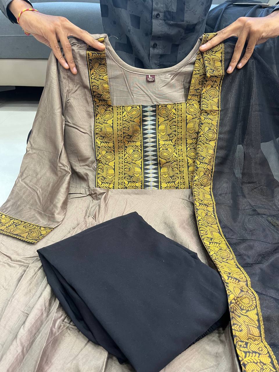 Anarkali Flared Banana Silk Kurti Pant Dupatta Set|| SA725-941