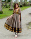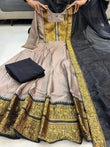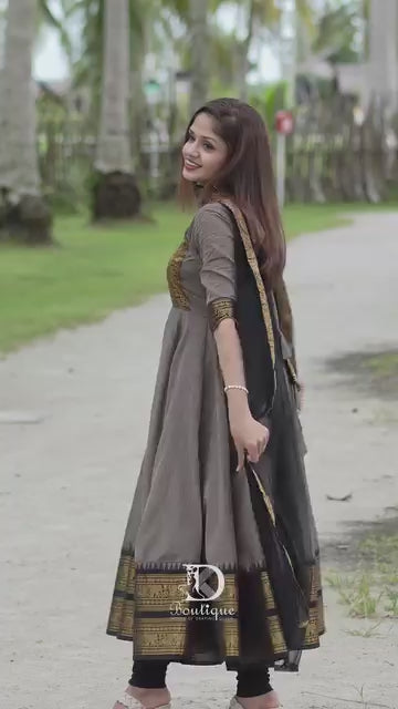 Step into timeless elegance with this luxurious Banana Silk Anarkali Set, designed to make you shine at every festive and celebratory occasion. The Anarkali kurti with 3-meter flare flows beautifully, creating a regal silhouette that enhances your ethnic charm.