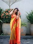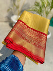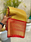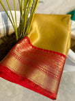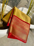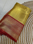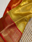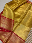 FABRIC--- Banarasi Woven GOLDEN TISSUE SILK SAREE. All over GOLD ZARI woven design.