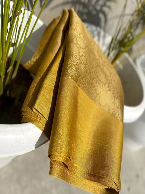 FABRIC--- Banarasi Woven SOFT KANJIVARAM TISSUE SILK SAREE. All over ZARI woven design.