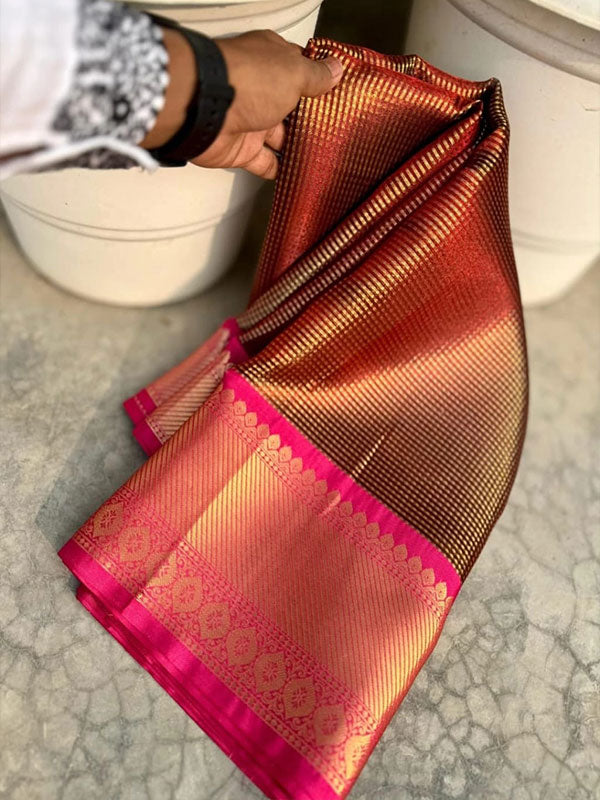 Banarasi Soft Tissue Silk Saree with Gold Zari Weaving & Rich Contrast Pallu