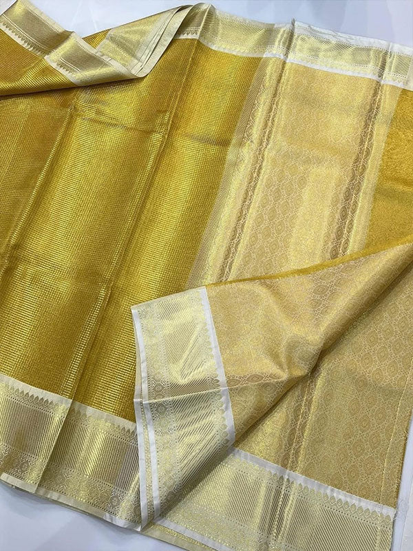 FABRIC- Banarasi Woven SOFT KANJIVARAM TISSUE SILK SAREE with Beautiful Pure Jari Border. All over ZARI woven design.
