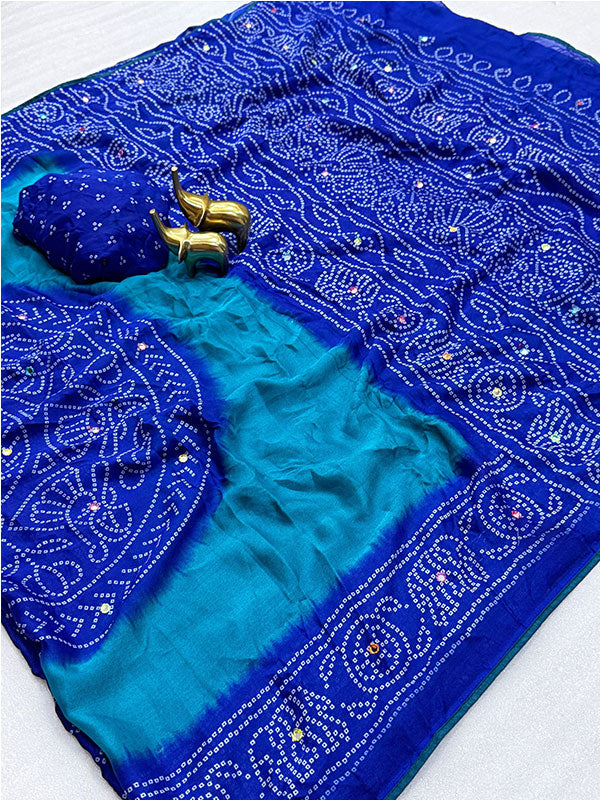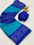The showstopper? A majestic contrast Bandhani design print that adds a vibrant, traditional twist to this modern masterpiece. Whether itβs a festive occasion or a classy get-together, this saree guarantees compliments.