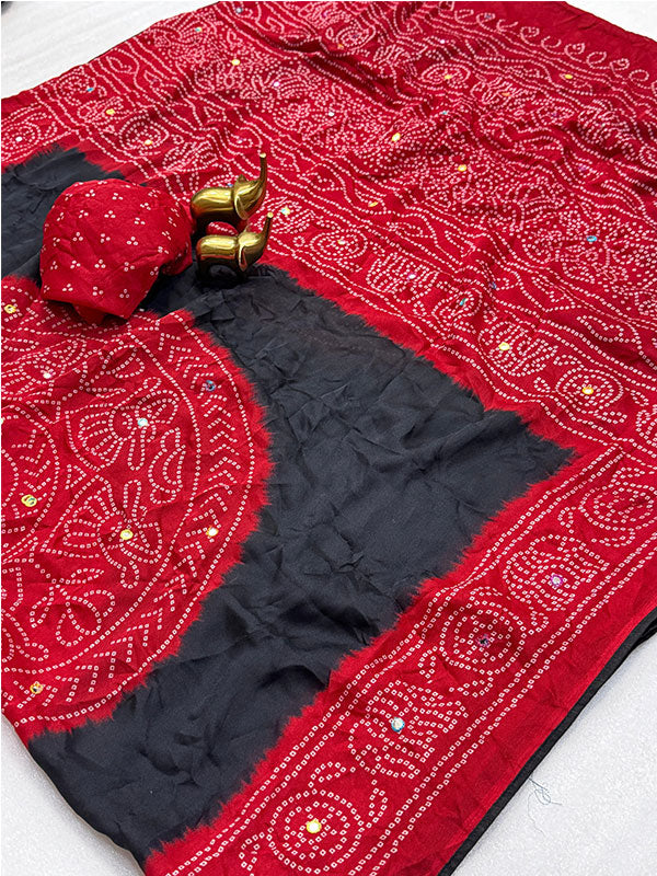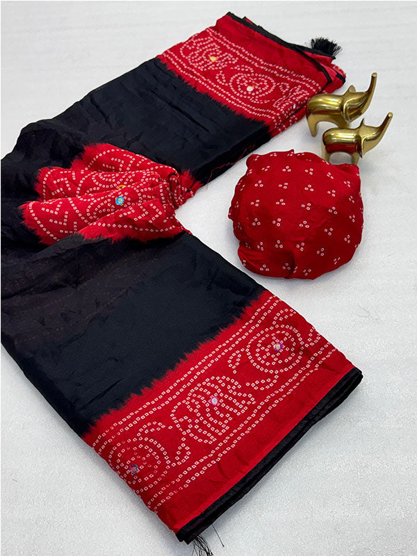 The showstopper? A majestic contrast Bandhani design print that adds a vibrant, traditional twist to this modern masterpiece. Whether itβs a festive occasion or a classy get-together, this saree guarantees compliments.
