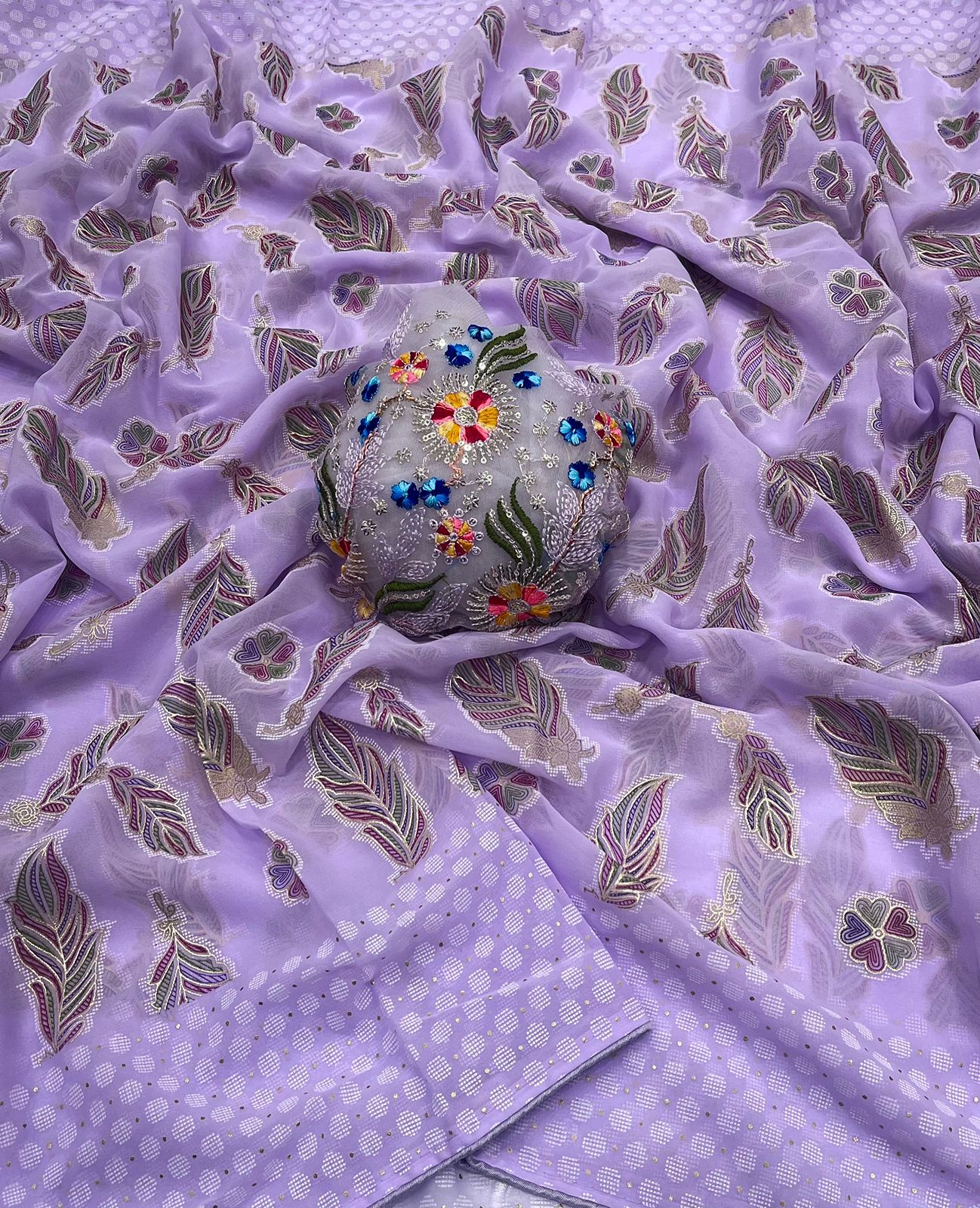 Work: Foil print with embroidery work