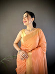 Drape yourself in tradition with this beautiful cotton saree, intricately designed with zari check weaves all over the body, offering a perfect blend of simplicity and richness. The highlight of this piece is its richly woven zari Lagadi pallu, adding a royal touch to the drape. Accentuated with a matching zari border, this saree brings out timeless elegance—ideal for festive occasions, cultural functions, or graceful everyday wear. Pair it with classic jewelry for a complete ethnic look.
