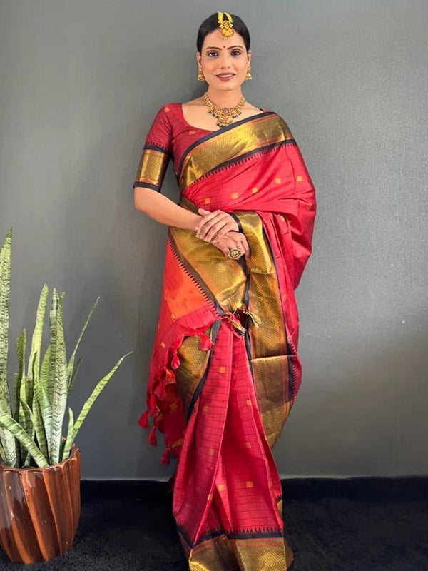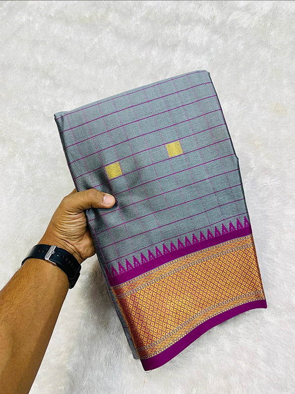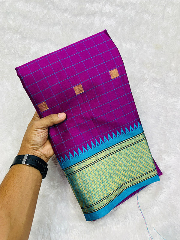 Checked Cotton Silk Paithani Sari SA125-227
