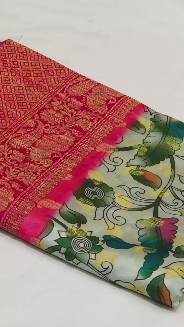 Drape yourself in elegance with this beautiful Banarasi silk saree. This saree is a masterpiece of traditional craftsmanship, featuring intricate zari gold weaving and stunning floral motifs inspired by Kanchi Pattu designs.