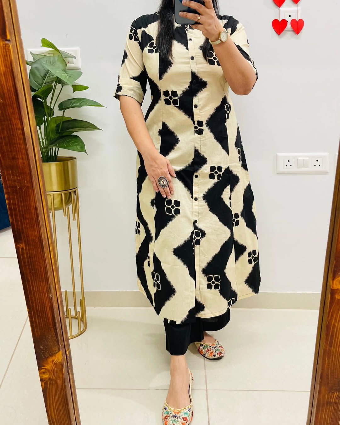 Step into effortless elegance with our Designer Co-Ord Set, featuring an A-line kurti paired with ankle-length pants—a deliberate blend of comfort, style, and statement fashion.