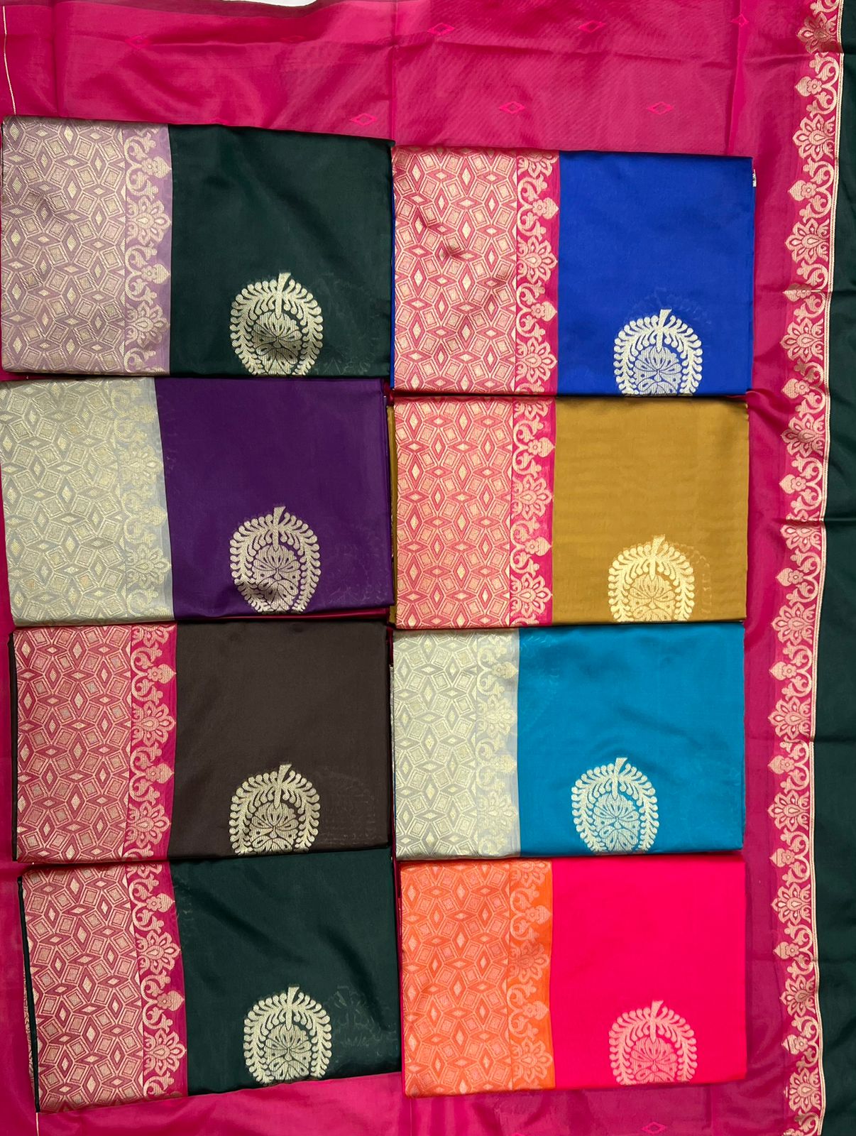 Drape yourself in luxury with our Soft Lichi Silk Saree. This exquisite piece features a beautifully rich butterfly-designed pallu that cascades with grace, while intricate jacquard work adorns the entire saree. The soft, smooth fabric ensures a comfortable drape and a flawless fall. It comes with an exclusive blouse featuring a matching jacquard border, making this a perfect ensemble for weddings, festivals, and special occasions. The timeless design and superior craftsmanship make it a truly valuable addition to your wardrobe.