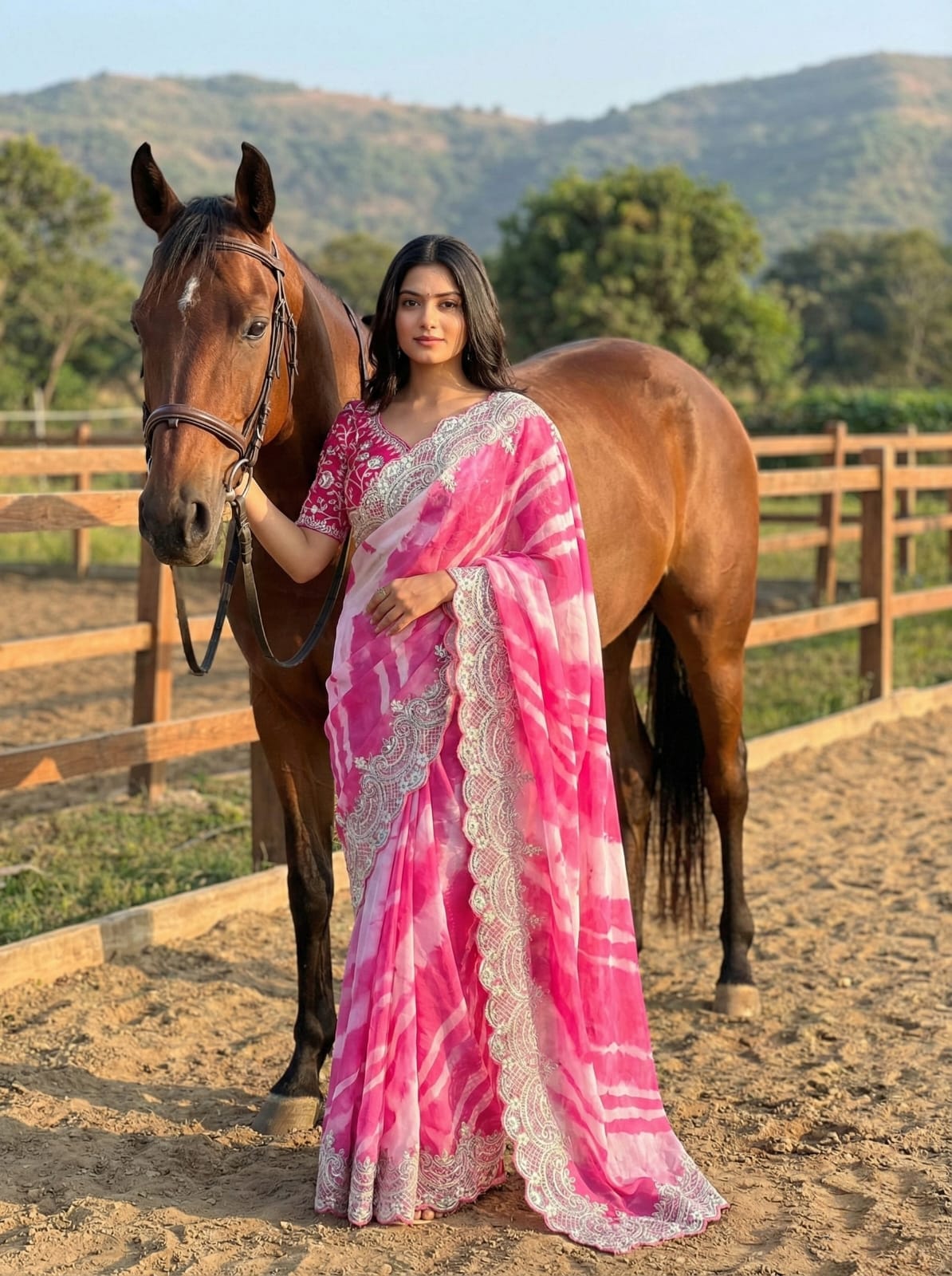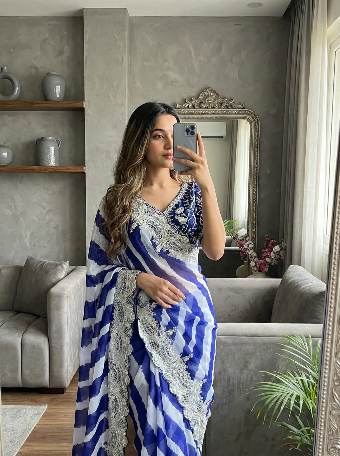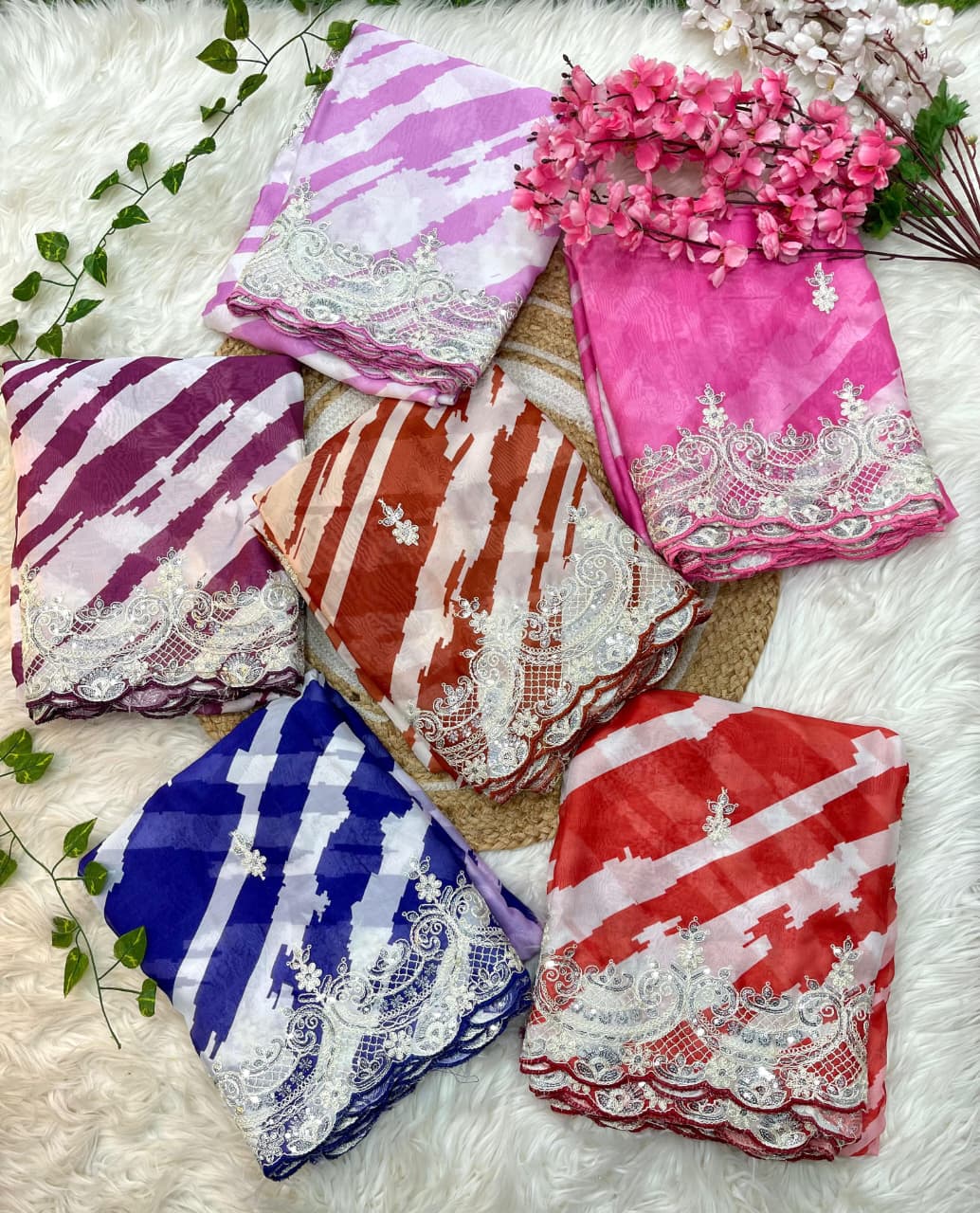 Designer Lehariya Print Silk Saree with Embroidery & Blouse SA1225-1622