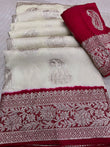 Comes with a matching running viscose blouse, making it perfect for Durga Puja, weddings & grand occasions.