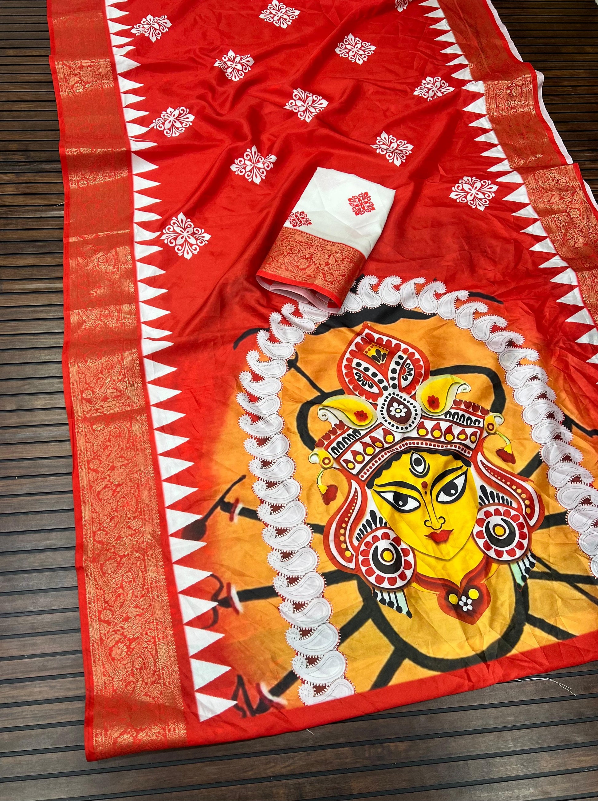 Divine Durga Puja Drape – Silk Elegance SA825-930