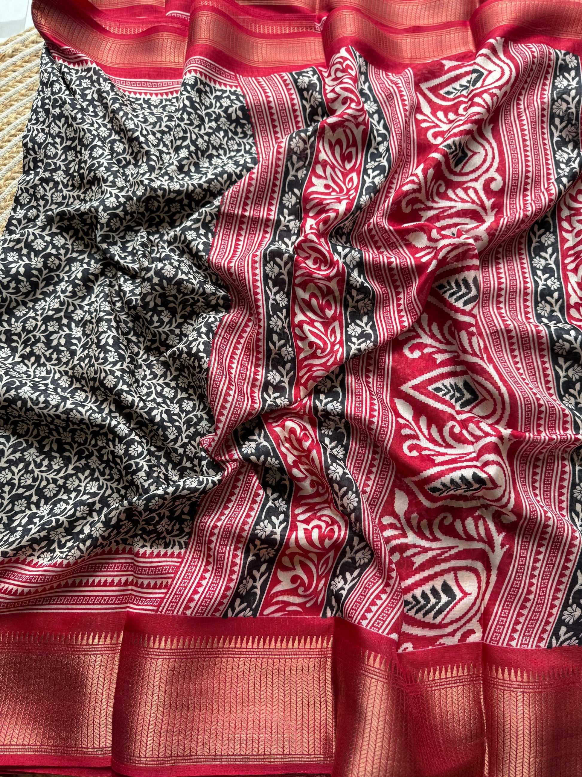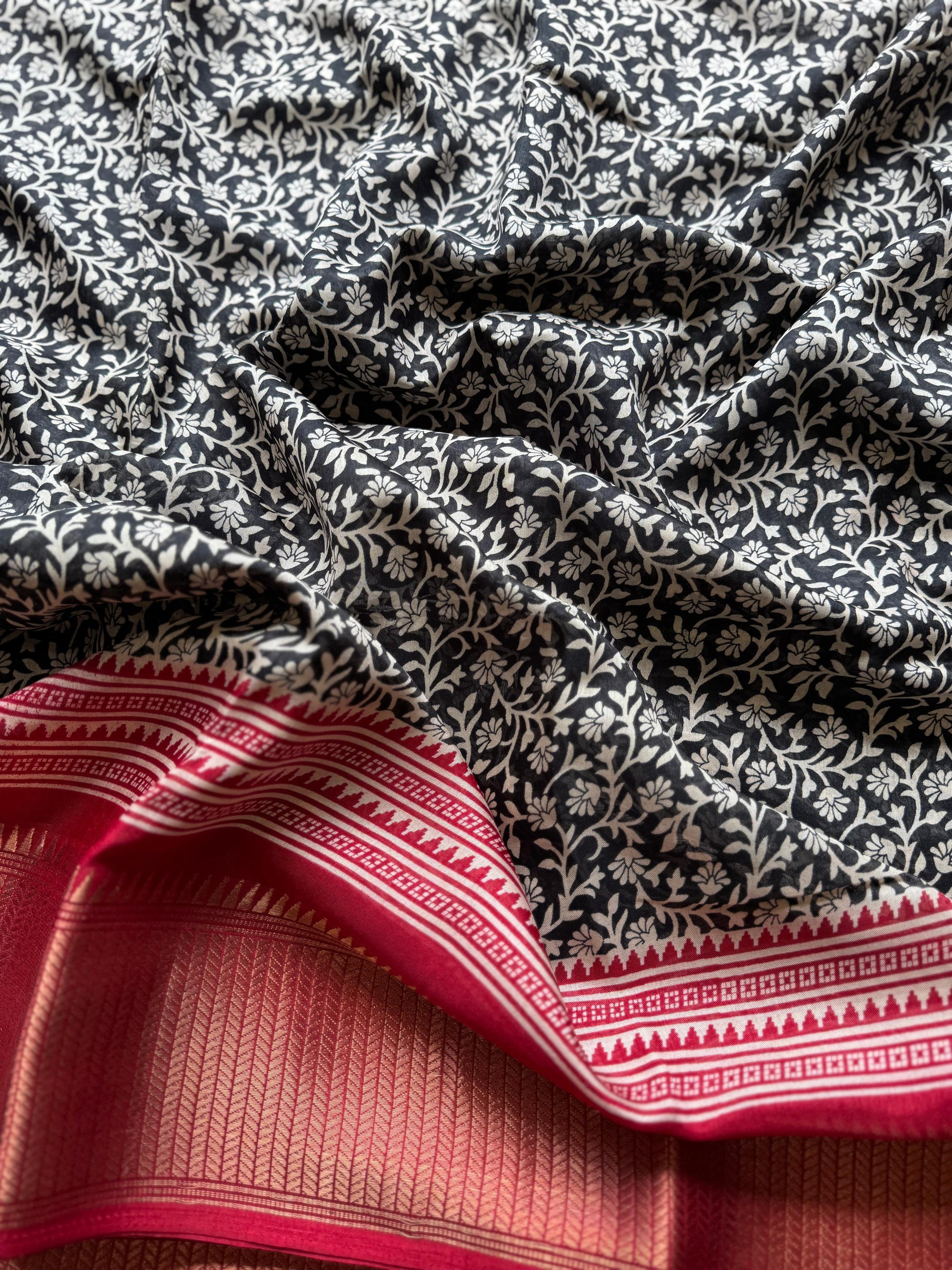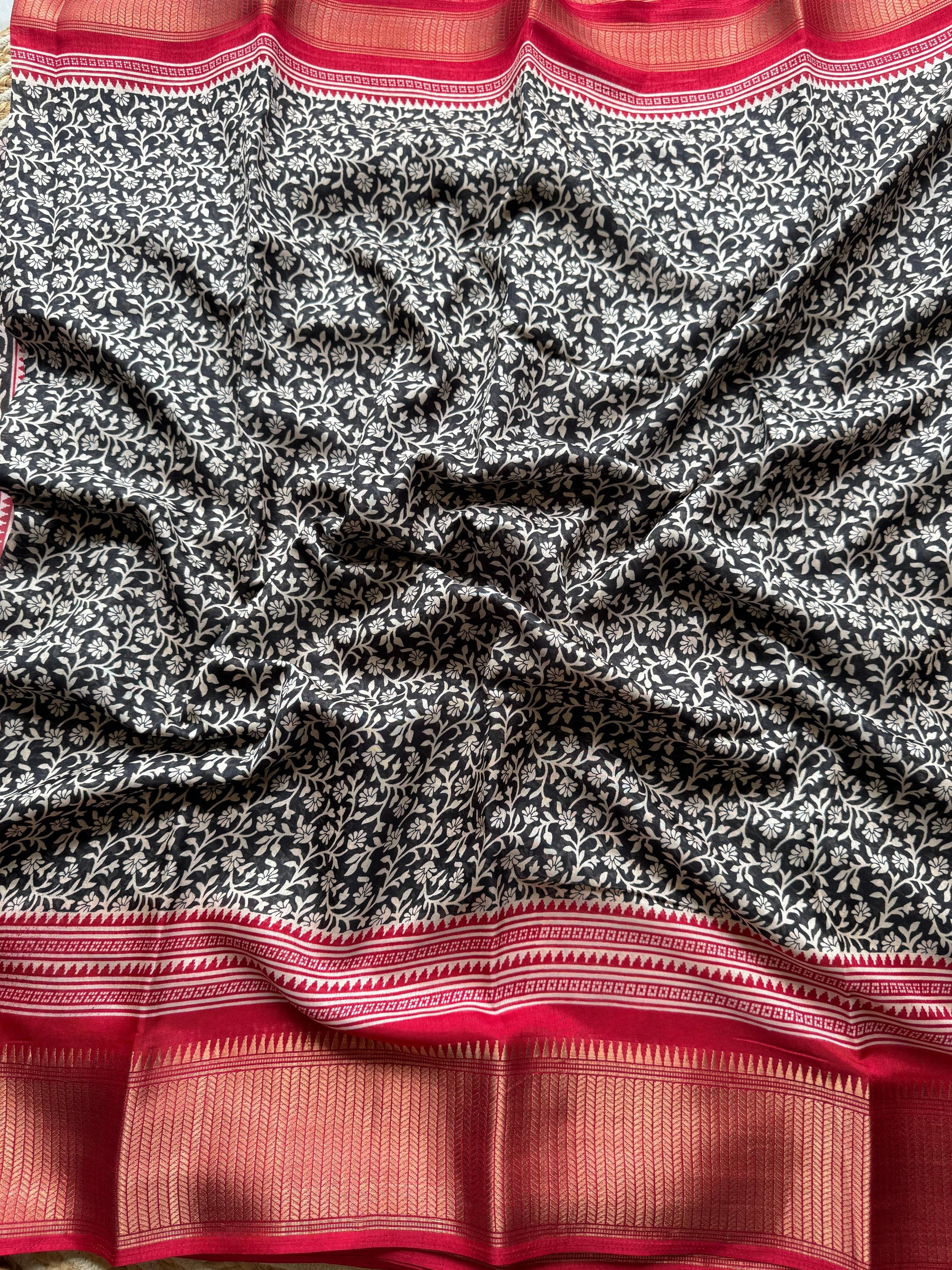 🌸 Design: Floral Print with Zari Border