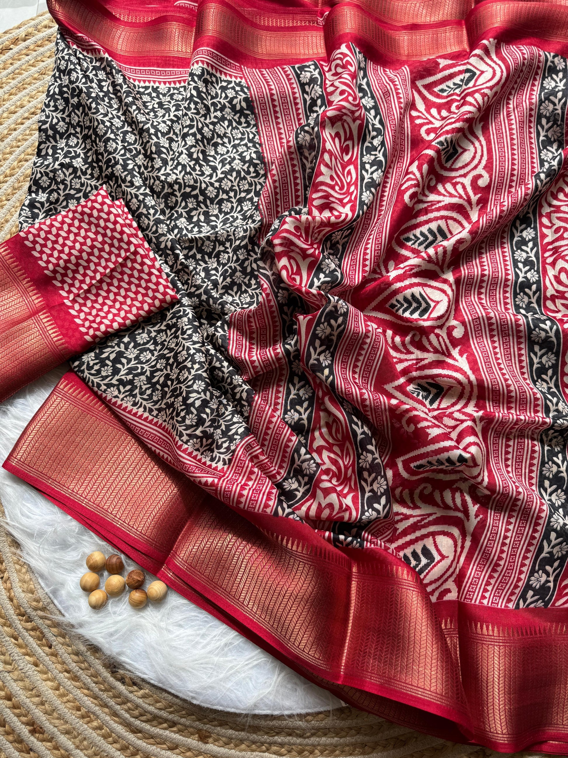 Whether you're drawn to classic red or timeless black, each saree offers a graceful charm suitable for everyday wear or special moments.