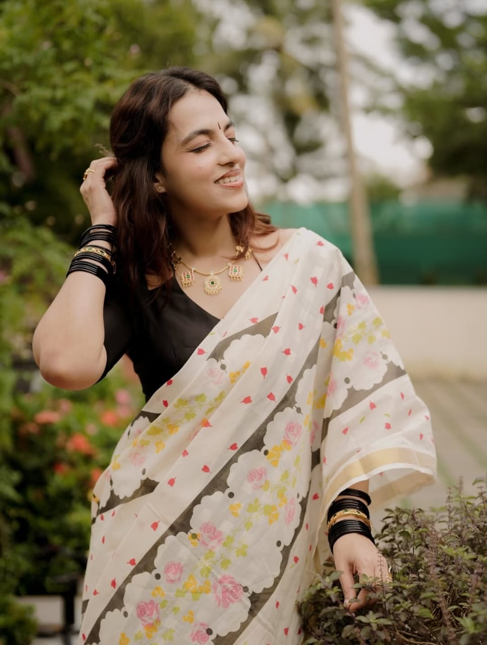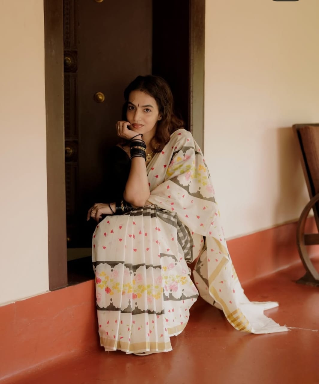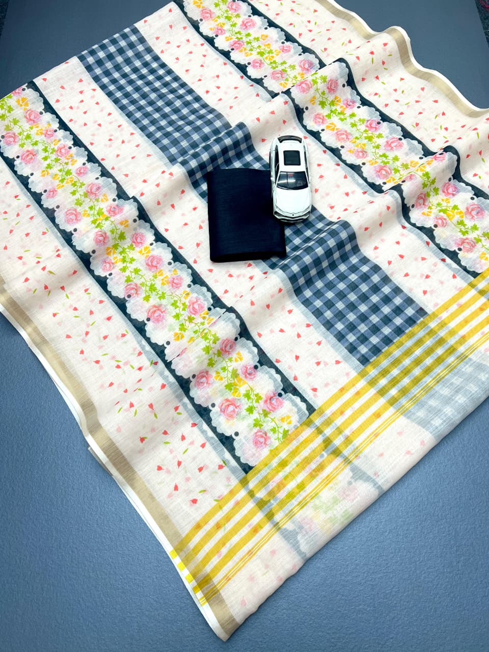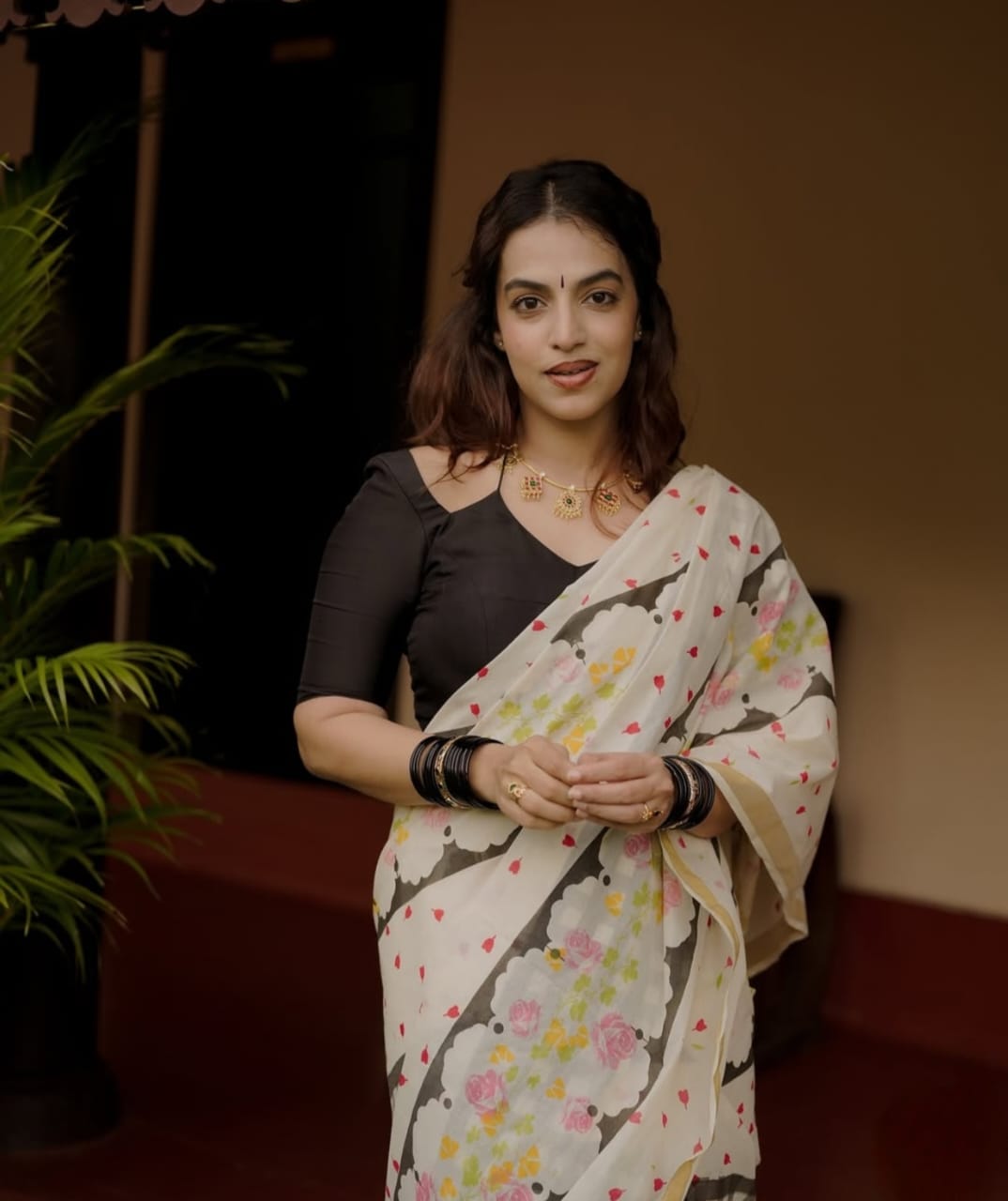 Bring elegance to your everyday or festive look with this beautifully crafted linen saree featuring digital prints. Lightweight and breezy, it offers comfort with a chic appeal. Paired with a smooth Bangalori satin blouse, this drape is a perfect pick for both casual and semi-formal occasions.