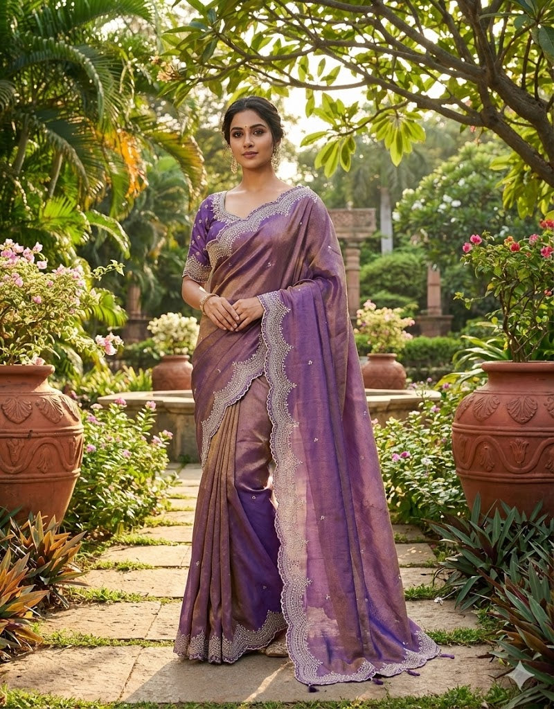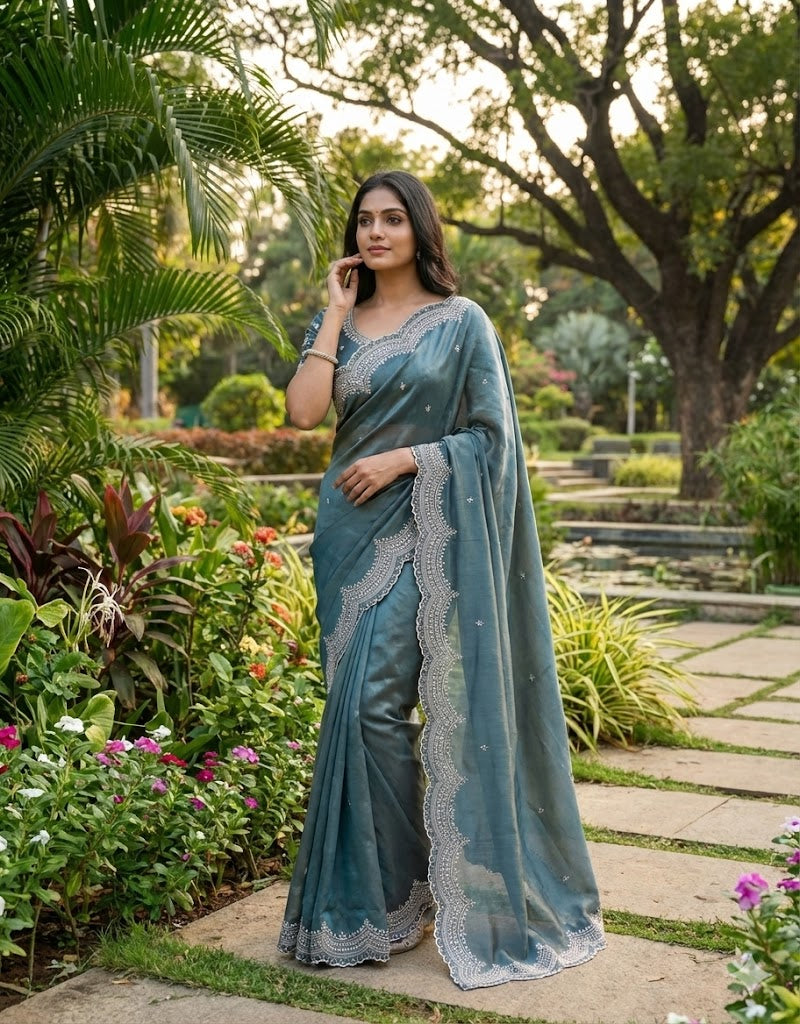 Whether attending a wedding reception, a festive gathering, or an evening party, this saree promises to turn heads. It comes with a matching running blouse piece that can be tailored to your style preferences.