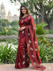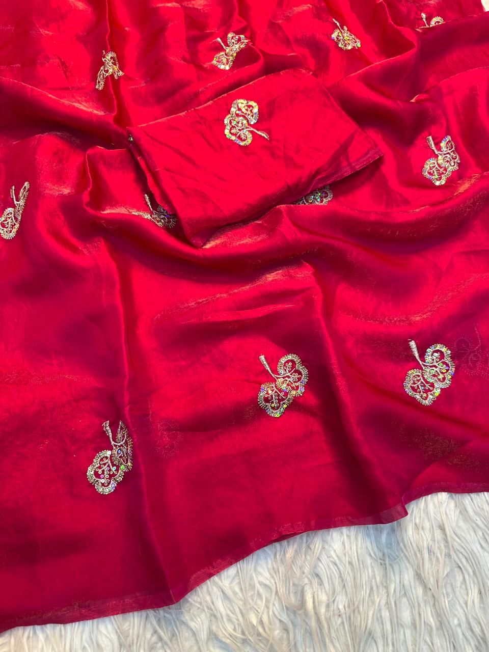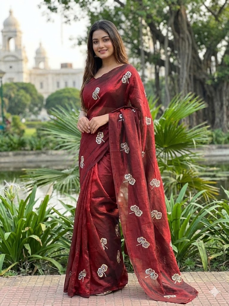 Work: All-over Zari & Sequence work with Flower Butti motifs.