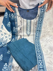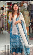 The set is completed with a solid matching pant in rich teal and a beautifully bordered dupatta featuring floral motifs and fine detailing, making it an ideal ensemble for festive occasions, family gatherings, or casual elegance. The soft Berry Silk fabric ensures a luxurious drape and comfortable wear all day long.