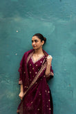 Elegant Wine Chanderi Sharara Style Kurta Set|| SA725-940