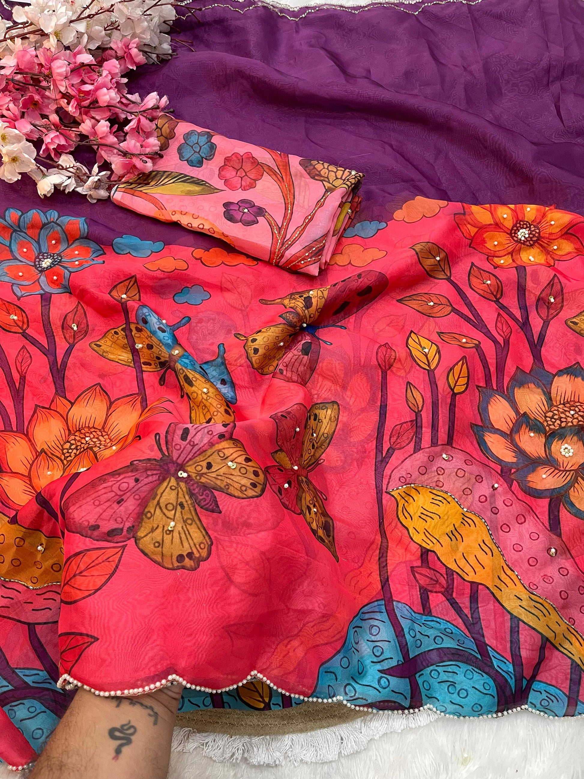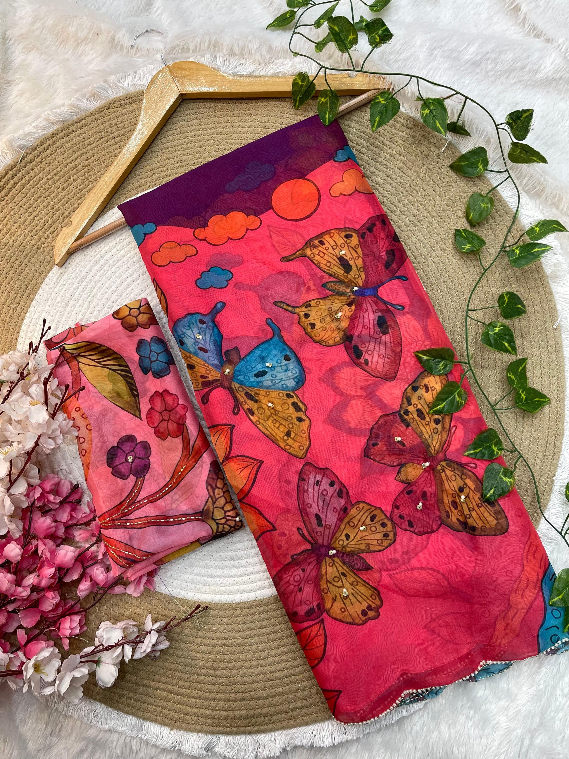Butterfly Bliss – Soft Teby Silk Saree with Digital Print SA725-929