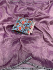 Blouse: Printed blouse with attached mirror lace (unstitched)