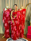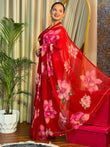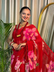 Paired with a plain raw silk blouse, this drape is a single-hit designer piece crafted for special occasions.