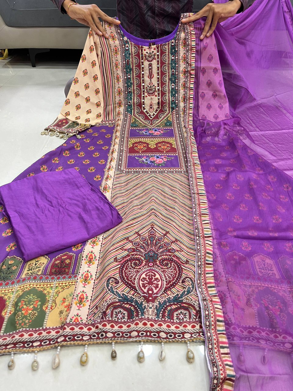 Step into elegance with this showroom-quality Anarkali Kurti Set, crafted in luxurious Pure Chinon fabric. Designed with a graceful flared silhouette, this outfit is ideal for festive occasions, family gatherings, or daytime celebrations.