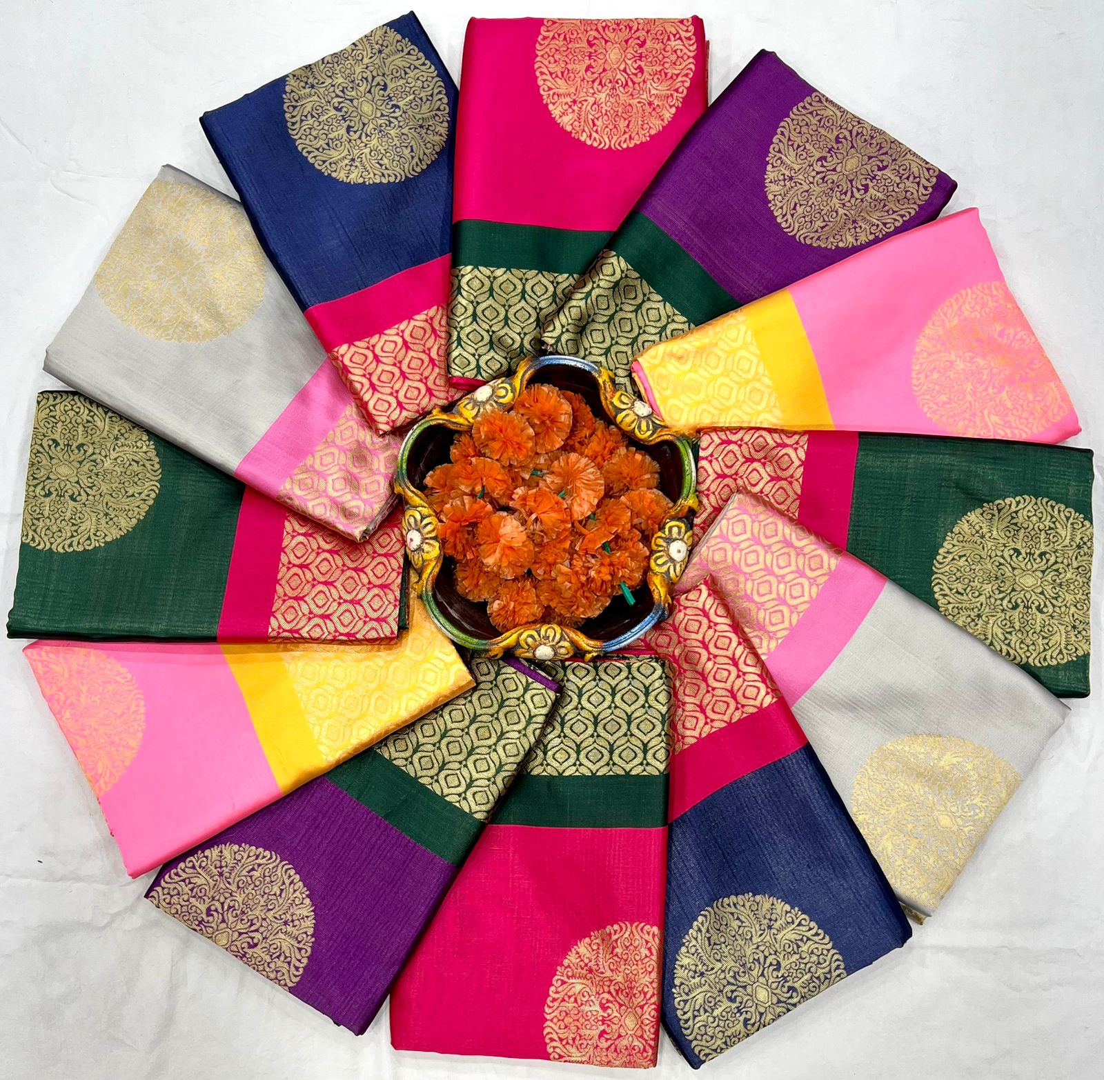 Drape yourself in luxury with our Soft Lichi Silk Saree. This exquisite piece features a beautifully rich butterfly-designed pallu that cascades with grace, while intricate jacquard work adorns the entire saree. The soft, smooth fabric ensures a comfortable drape and a flawless fall. It comes with an exclusive blouse featuring a matching jacquard border, making this a perfect ensemble for weddings, festivals, and special occasions. The timeless design and superior craftsmanship make it a truly valuable addition to your wardrobe.