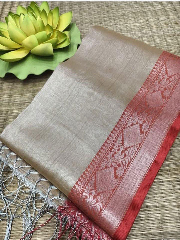 FABRIC DETAILS:- PURE HANDLOOM RAGA TISSUE WITH SOFT COTTON FABRIC & BEAUTIFUL JACQUARD BORDER AND TASSLES ON PALLU