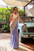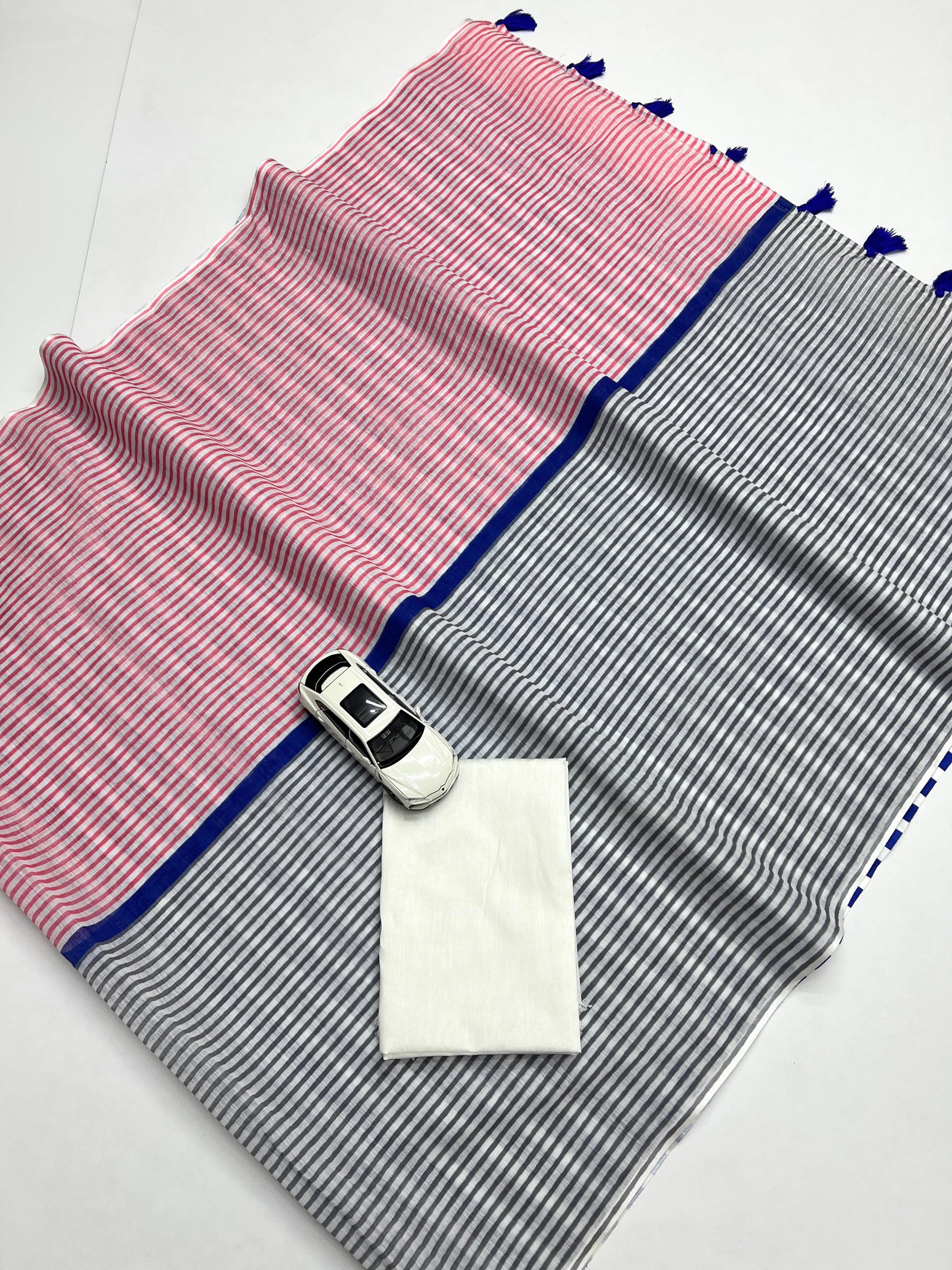 Elevate your festive wardrobe with this Linen Saree featuring silver zari patta and exquisite digital print designs. Perfect for celebrations, this saree combines elegance, comfort, and a modern touch.