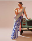 ✨ Blouse Fabric: Linen with Silver Zari Patta & Digital Print