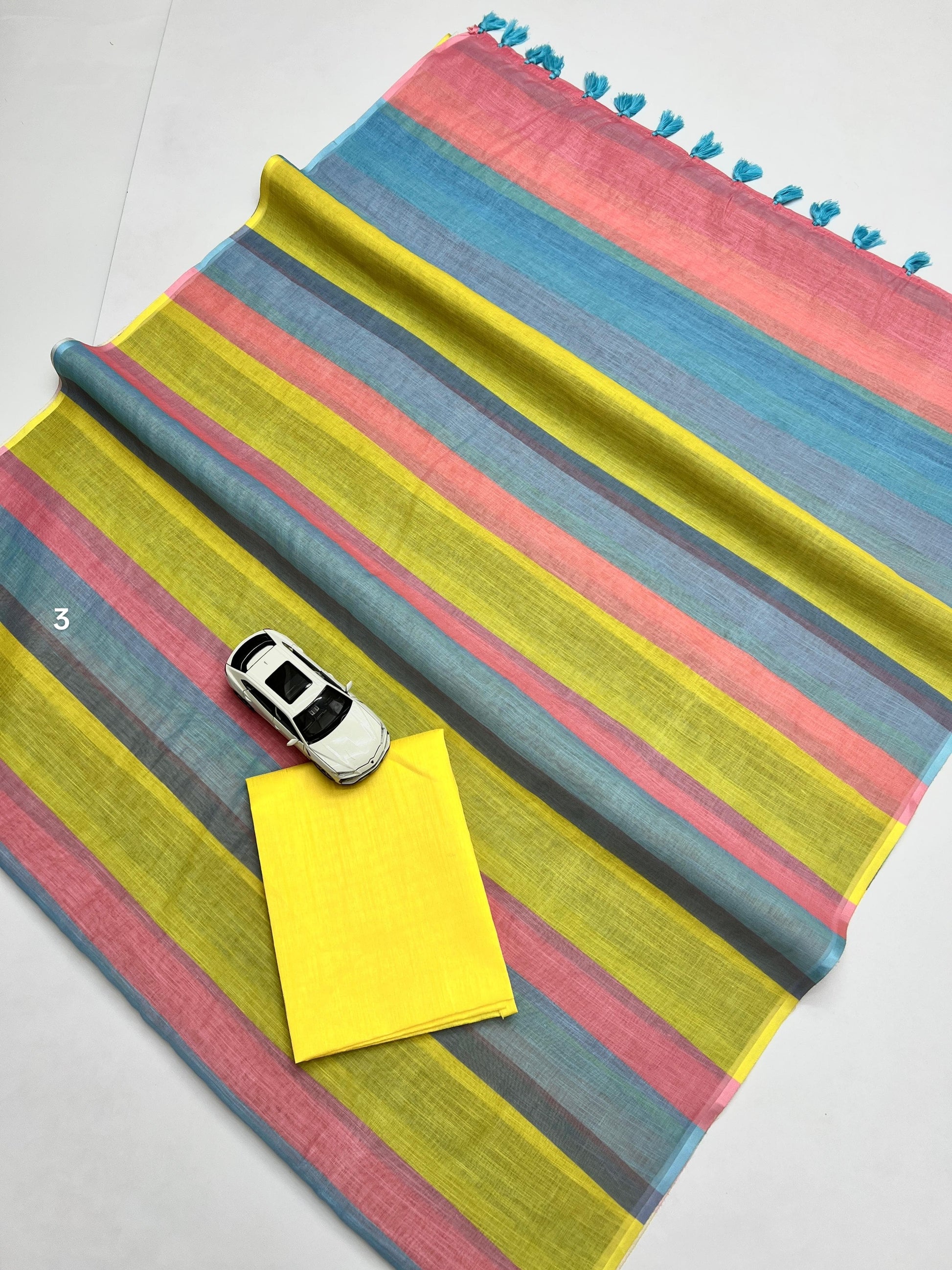 Elevate your festive wardrobe with this Linen Saree featuring silver zari patta and exquisite digital print designs. Perfect for celebrations, this saree combines elegance, comfort, and a modern touch.
