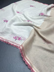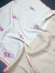 Elevate your festive wardrobe with this Linen Saree featuring silver zari patta and exquisite digital print designs. Perfect for celebrations, this saree combines elegance, comfort, and a modern touch.