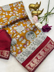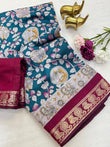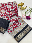 Experience the elegance of this beautiful Mangalagiri Silk Saree, featuring a rich, all-over traditional design. The saree is highlighted by a distinctive Viscose woven border with an intricate Kalamkari inspired print, adding a unique artistic touch. The saree drapes beautifully, making it perfect for festive occasions, weddings, or special events.