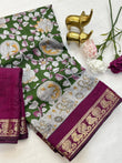 Mangalagiri Silk Saree with All-Over Weaving Design, Kalamkari Print & Viscose Border SA1025-1271
