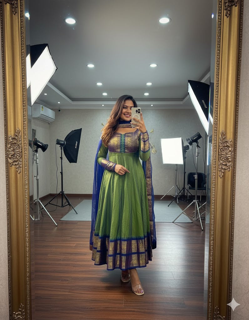 Elegant Anarkali silhouette with 3 mtr flared ghera