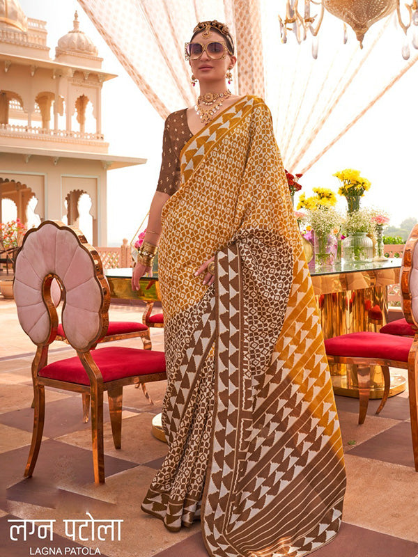 Celebrate tradition with elegance in this Lagna Patola Mercerized Sigma Silk Saree, showcasing a classic Patola design with rich cultural essence. Made with premium mercerized silk, it features an exquisite aqua finish that enhances its smooth texture and luxurious appeal.