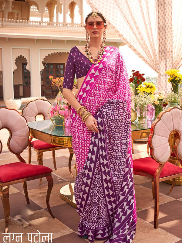 Patola Silk Saree with Traditional Classic Design & Aqua Finish SA625-793