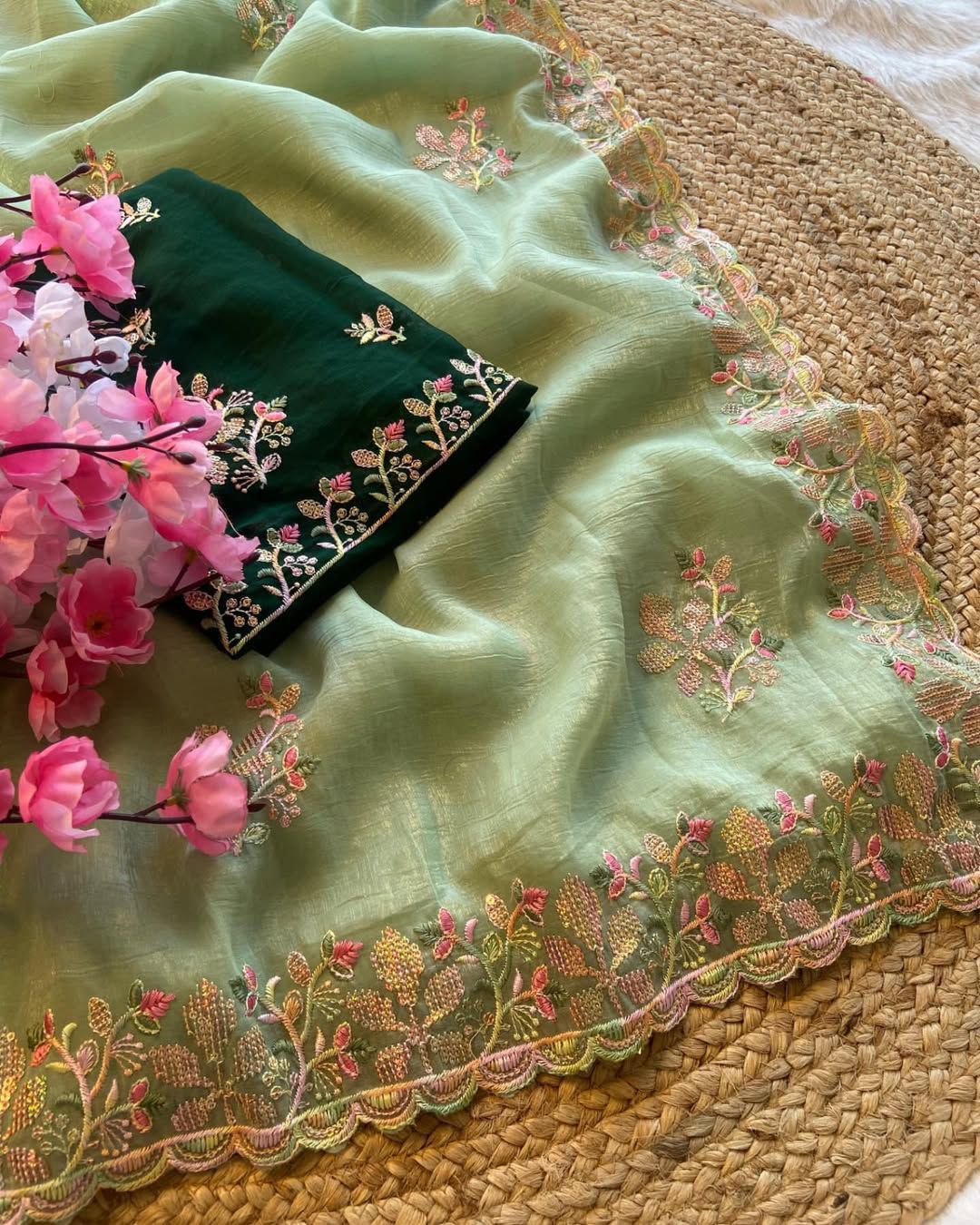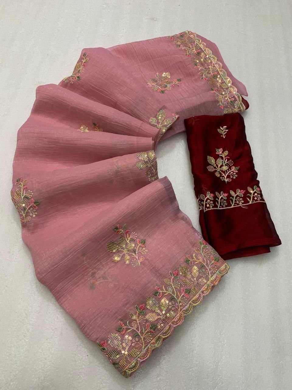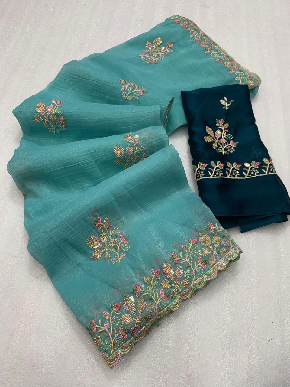 Make a statement of luxury with this premium-quality crunchy designer saree, beautifully adorned with sequin embroidery on the C-pallu for a glamorous touch. Paired with a Banglori sequin embroidered blouse, this drape exudes elegance and festive charm. Perfect for weddings, receptions, and grand celebrations, it adds a dazzling sparkle to your ethnic wardrobe. 🌸