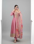 Step into festive elegance with the Priya Festival Special Anarkali Set, crafted to make you shine at celebrations and special occasions. This flared Anarkali kurti is made from luxurious banana silk, paired with matching pants and a Banarasi silk dupatta for a complete festive look.