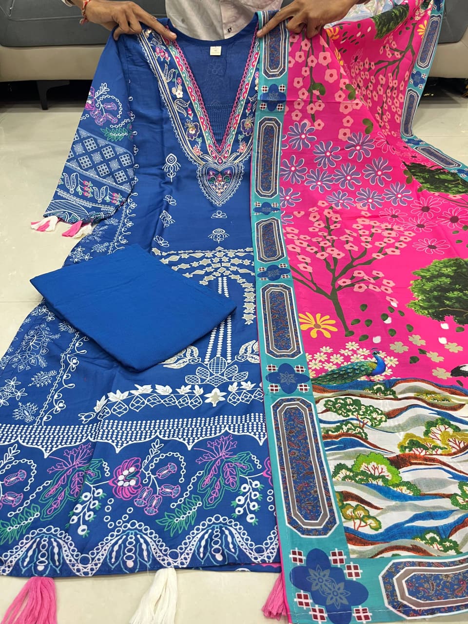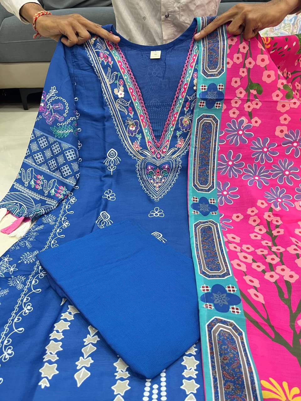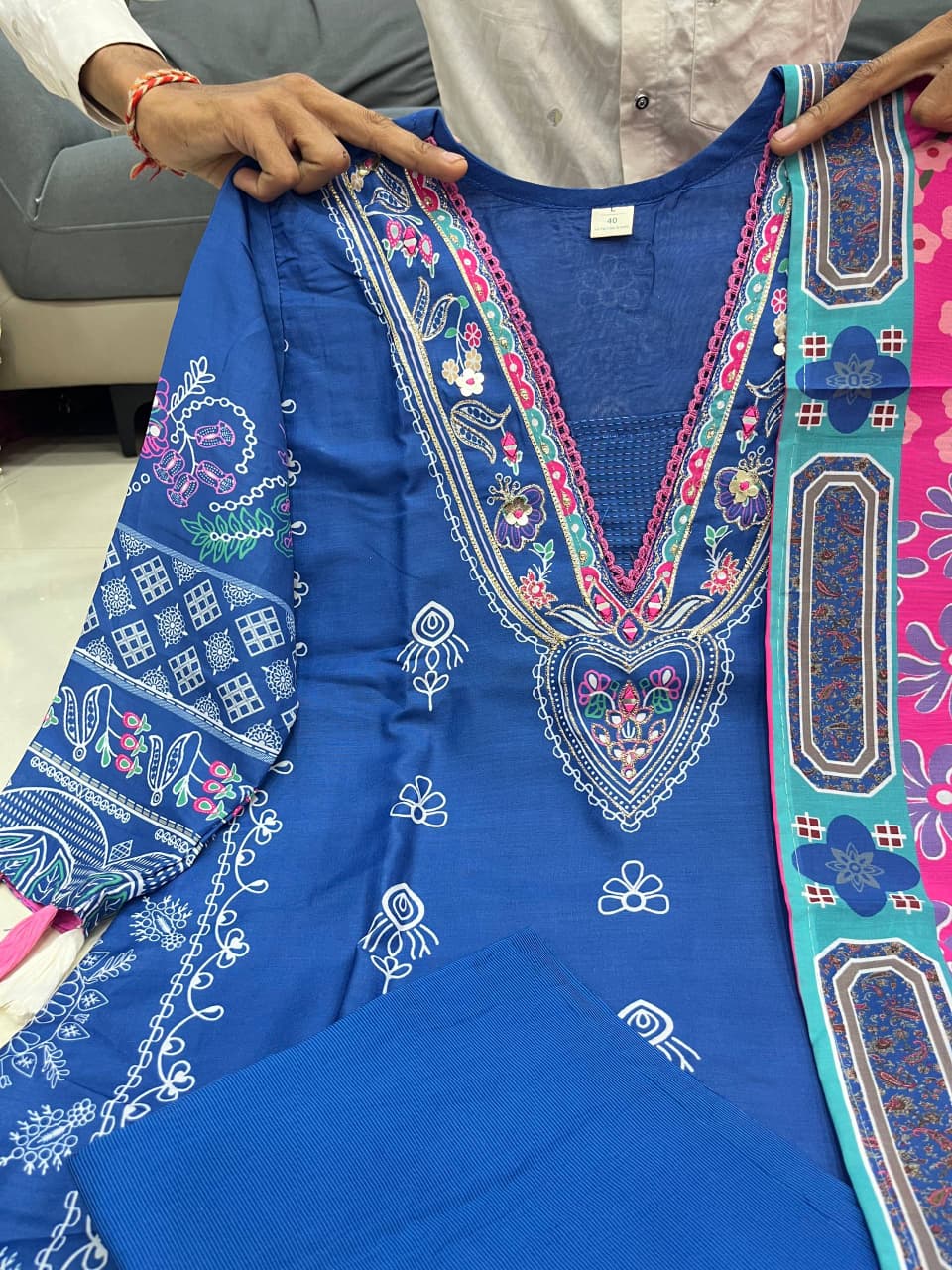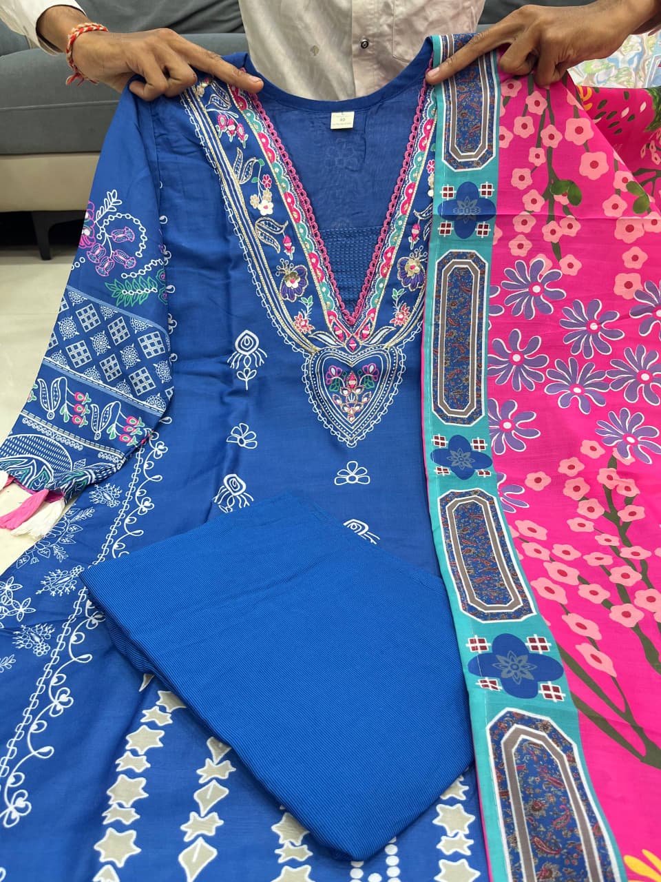 Premium Muslin Suit Set | Handwork Neck Kurti Pant Dupatta || SA1225-1014