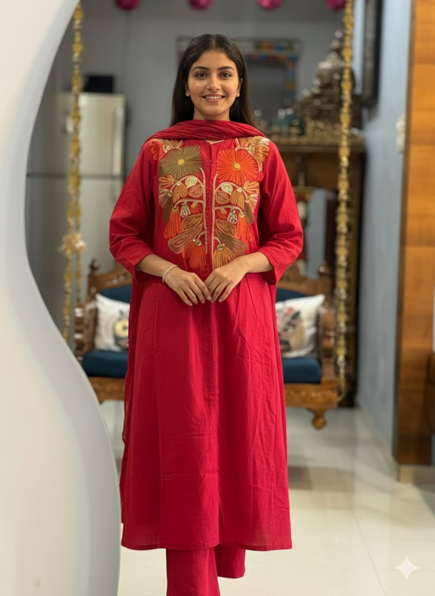 Pure Mul Cotton 60×60 Kurti Pant Dupatta Set|| SA925-1254
